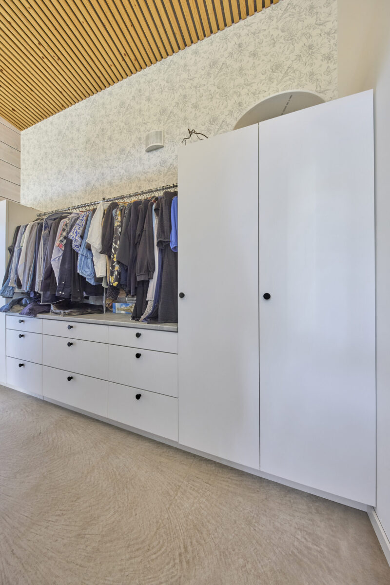 Aktiivinen perhe tarvitsee toimivia säilytysratkaisuja. Jokaisella on omat harrastuksensa ja tavaransa, joten kalusteissa painotettiin muunneltavuutta ja kestävyyttä. Ratkaisut suunniteltiin niin, että tavarat pysyvät järjestyksessä ja arki sujuu mutkattomasti. Kotona tehdään paljon, ja tilaa riittää niin rauhalliselle puuhastelulle kuin erilaisille projekteille.