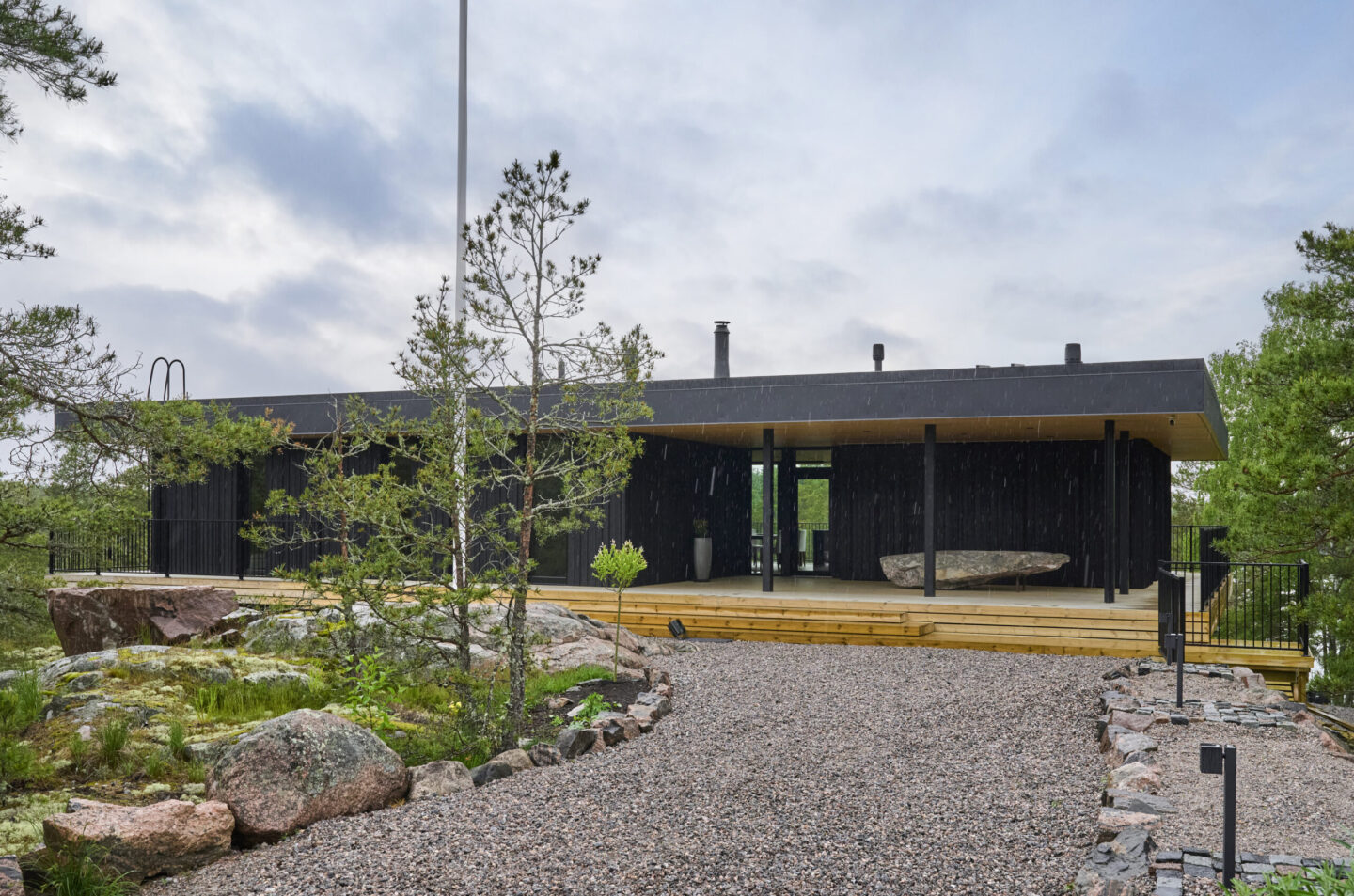 120-neliöisessä talossa nautitaan mahdollisimman pitkistä näkymistä, tilat tuntuvat jatkuvan ulos saakka ja jokaisesta ilmansuunnasta sisätiloihin tulviva luonnonvalo saa neliöt tuntumaan huomattavasti tilavammilta pilviselläkin säällä.