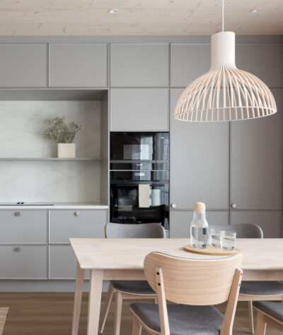 Lämminhenkinen keittiö kerrostalokodin sydämenä