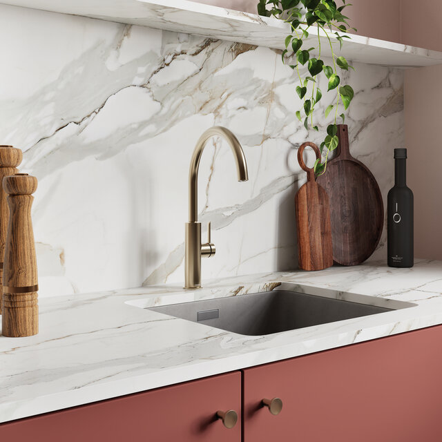 Kompaktitasoon altakiinnitetty valumarmoriallas on ihanteellinen