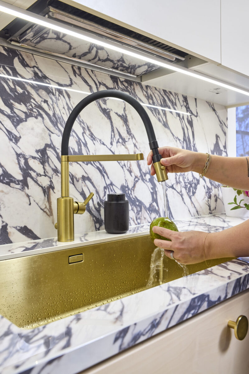 Silhouet Pro -hanan taipuisa letku ja suihkupää tekevät työskentelystä sujuvaa ja mahdollistavat tiskialtaan tehokkaan käytön.