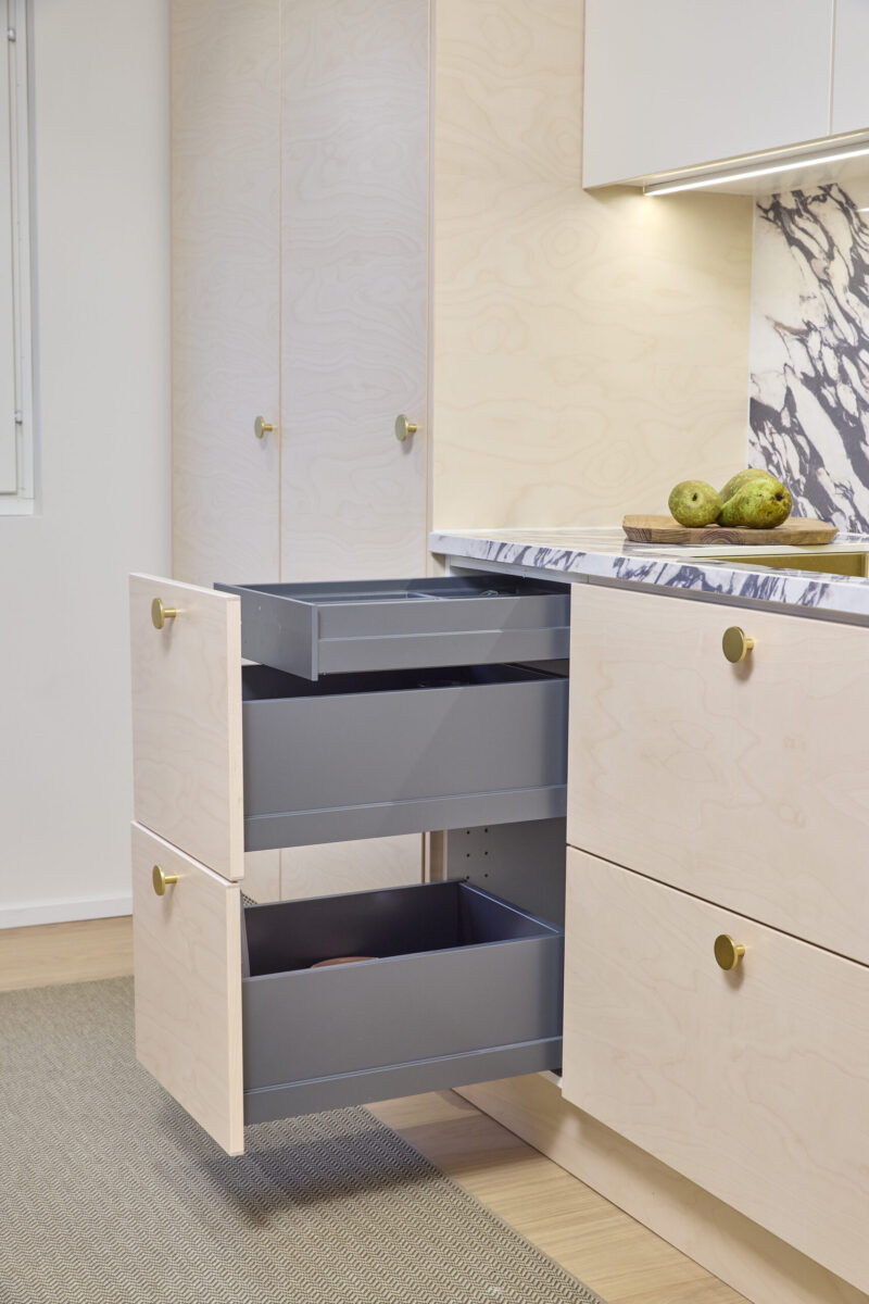 Hyvin suunnitellut vetolaatikot tukevat keittiön toimivuutta ja käytännöllisyyttä.