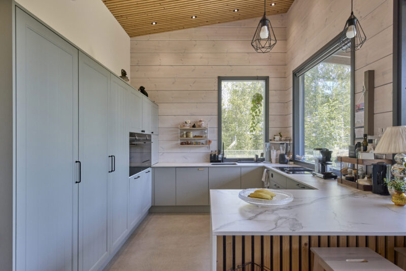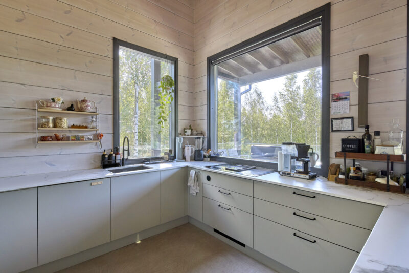 Luontomaisemaan harmonisesti yhdistyvä keittiö