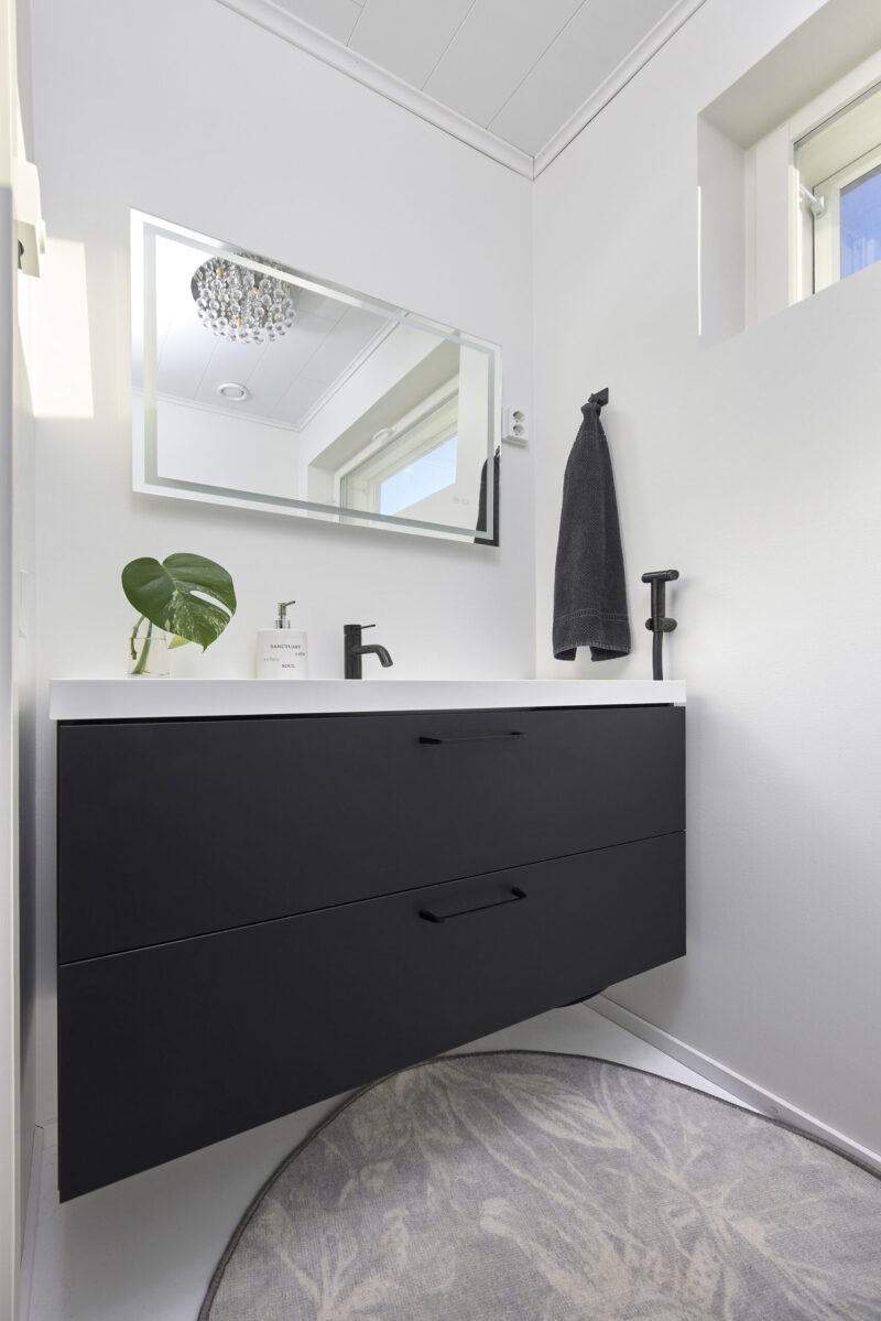 Kauniit, suuret mustat vetimet tuovat tyylikästä kontrastia vaaleisiin kalusteisiin.