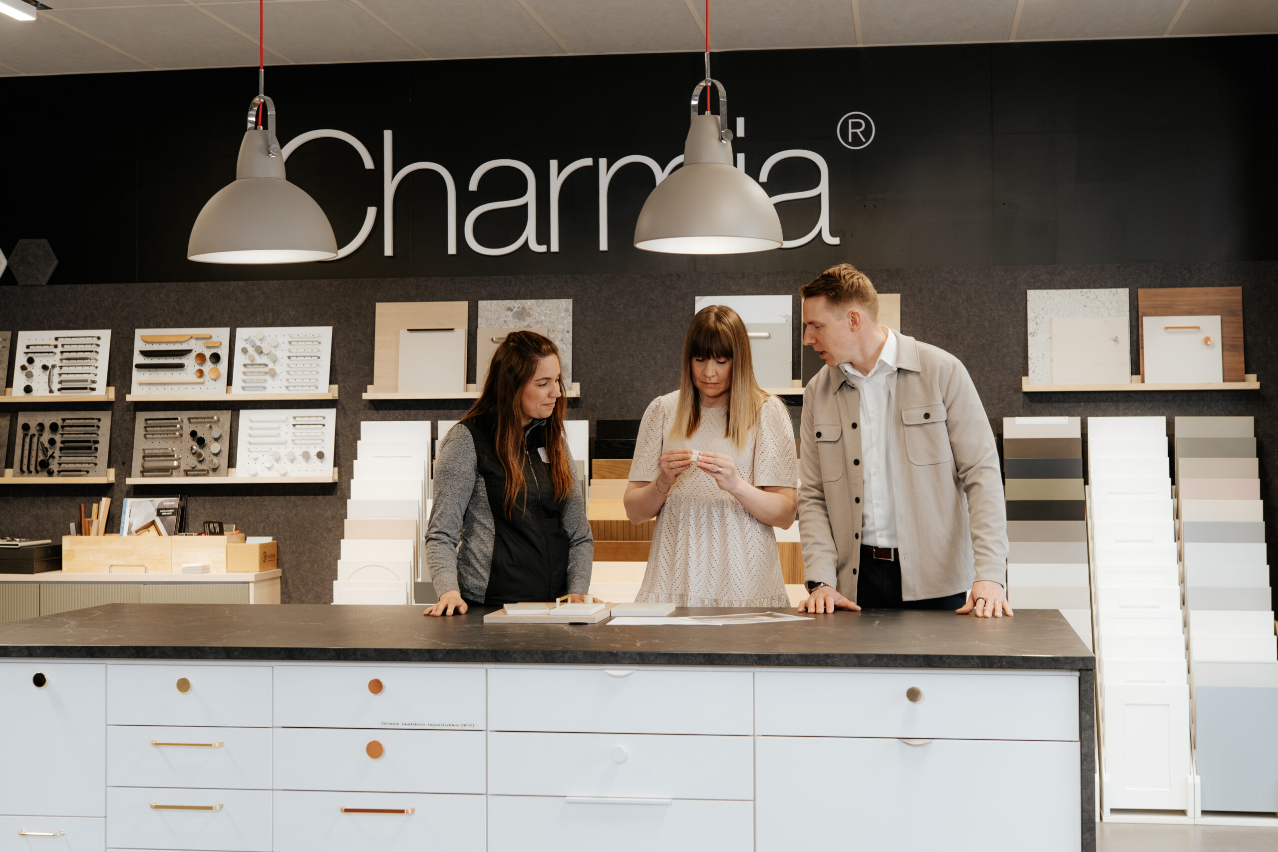 Kouvolasta tutut, kokeneet keittiö- ja kiintokalustemyyjät Marianne Laaksonen ja Reine Päivärinta suunnittelevat Charmia-keittiöt ja -kalusteet aina sinun tarpeidesi ja toiveidesi mukaan. Kalusteet valmistetaan Charmian omalla tehtaalla Loimaalla.